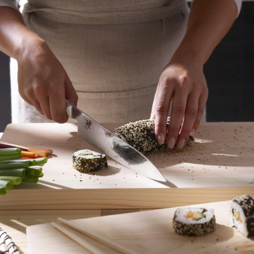 It’s Japanese cypress wood, naturally antibacterial and gentle on knife blades. That matters. You can spend proper money on good knives, but if you’re chopping on hard surfaces like glass or slate, you’re blunting them constantly and shortening their life considerably. Hinoki is soft enough to preserve your blade edges whilst being dense enough to not score or gouge easily. The wood also has natural oils that prevent food smells from absorbing, which is why it’s traditionally used for sashimi prep in Japan.