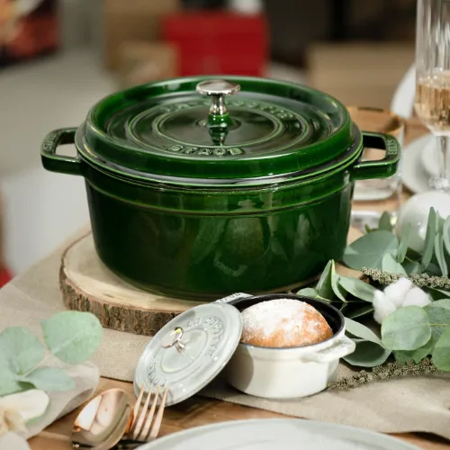 Mine is the 28cm round one in basil green. Bought it in France, of course. It’s the kind of investment piece that makes sense when you cook regularly and want equipment that actually lasts.