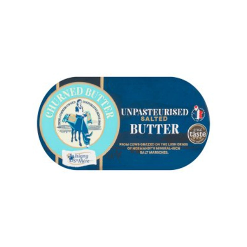 There’s nothing quite like proper French salted butter (beurre demi-sel) and this unpasteurised version from Isigny-sur-Mer is the real thing. The cows graze on Normandy’s salt marshes, which gives the butter its golden colour and complex flavour. It’s PDO-protected, so you’re getting actual Isigny butter rather than something “Normandy-style.”