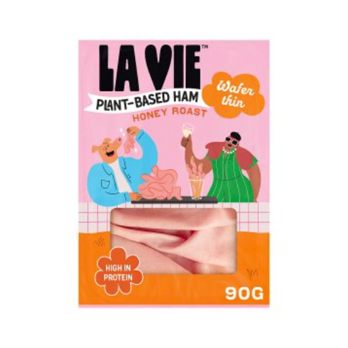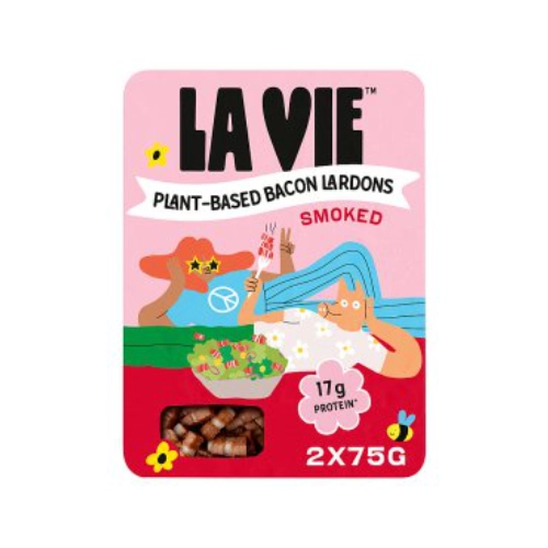 Right, this is maybe unexpected, but as we’re both pescatarian, these have become essential. We couldn’t live without La Vie products. La Vie is a French brand making plant-based charcuterie using fermentation. The result tastes unreal, genuinely smoky and meaty. They make smoked bacon, lardons, ham, and honey-roasted ham. All 100% vegan, so they work for vegetarians too.