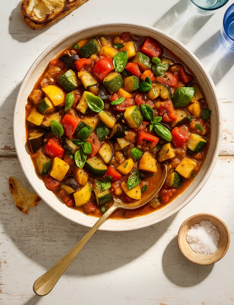 Classic Provençal ratatouille preserves brilliantly and tastes better than anything tinned. When you open a jar in winter, reheat it and serve over pasta or with crusty bread. Brilliant. Recipe here >