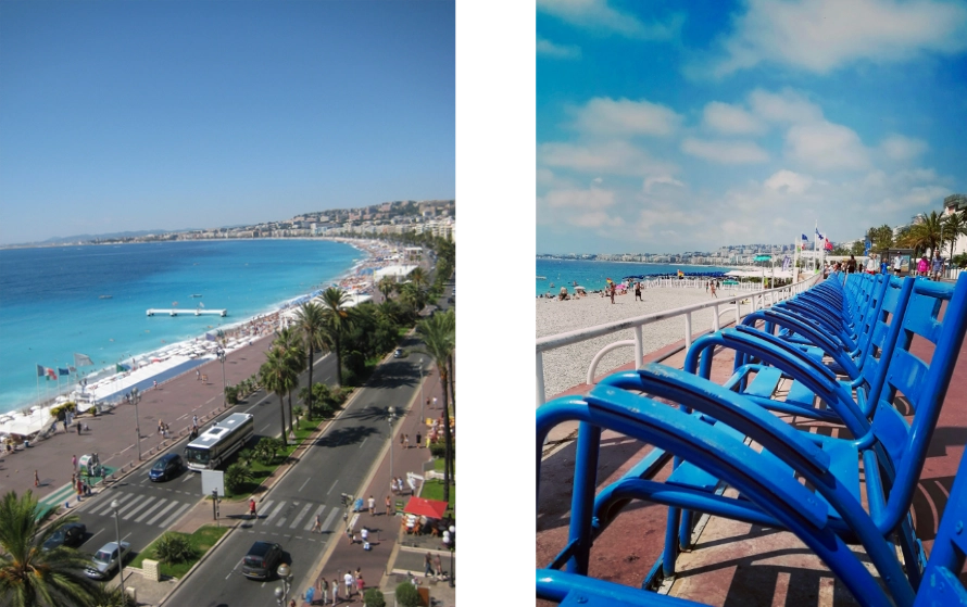 Today, it’s a parade route for beachlovers, joggers and rollerbladers (a.k.a. me at 8 years old). Stretching along the azure bay, fringed by palms and Belle Époque hotels, it practically dares you not to sit and watch the world for an hour (or three) with an ice cream dripping down your hand.