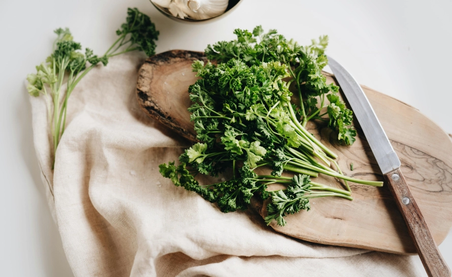 Parsley is packed with vitamins K, C, and A. It’s a good source of folate and iron. Contains flavonoids and other antioxidants that may help reduce inflammation. Traditional use includes supporting kidney function and digestion. The high chlorophyll content acts as a natural breath freshener.